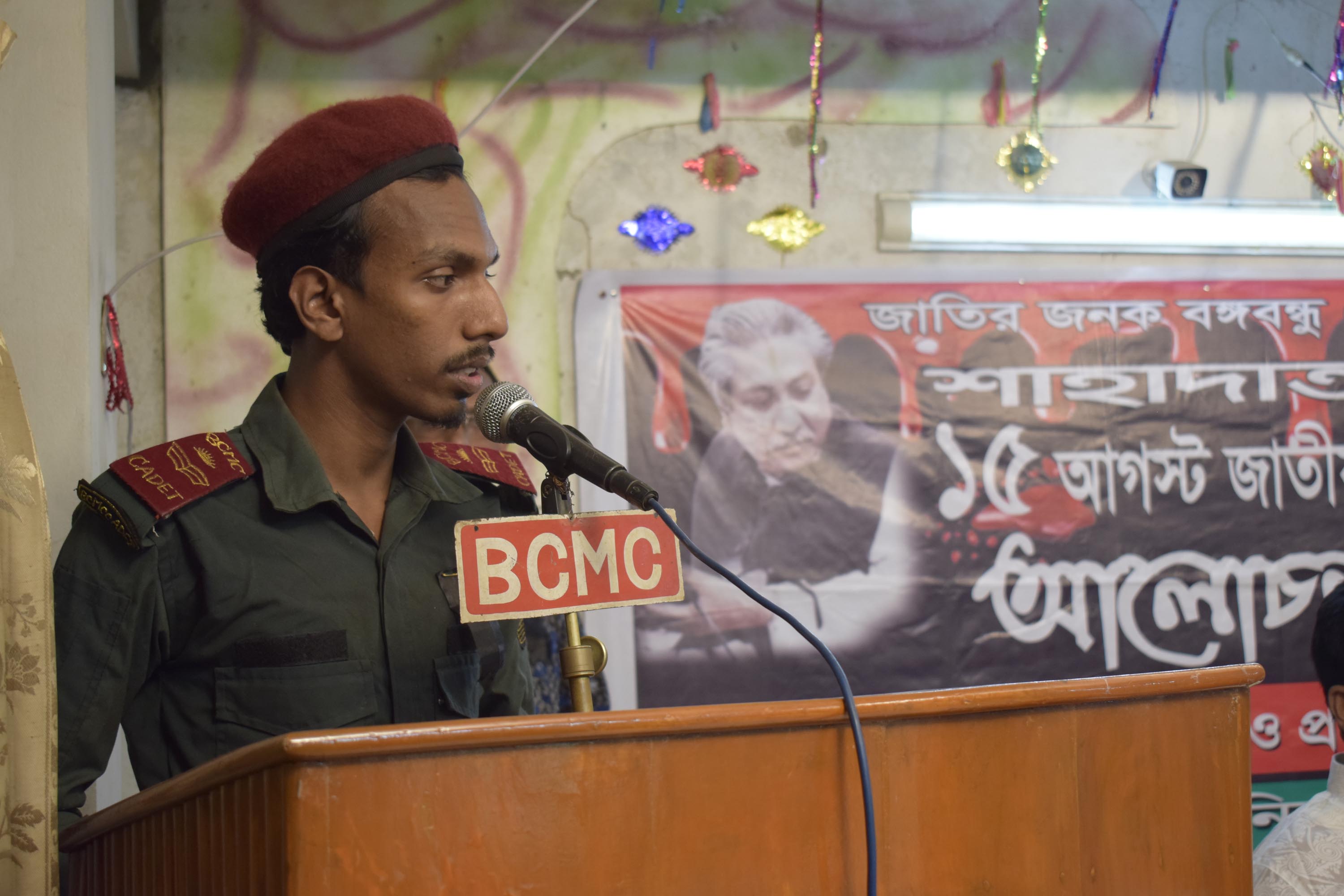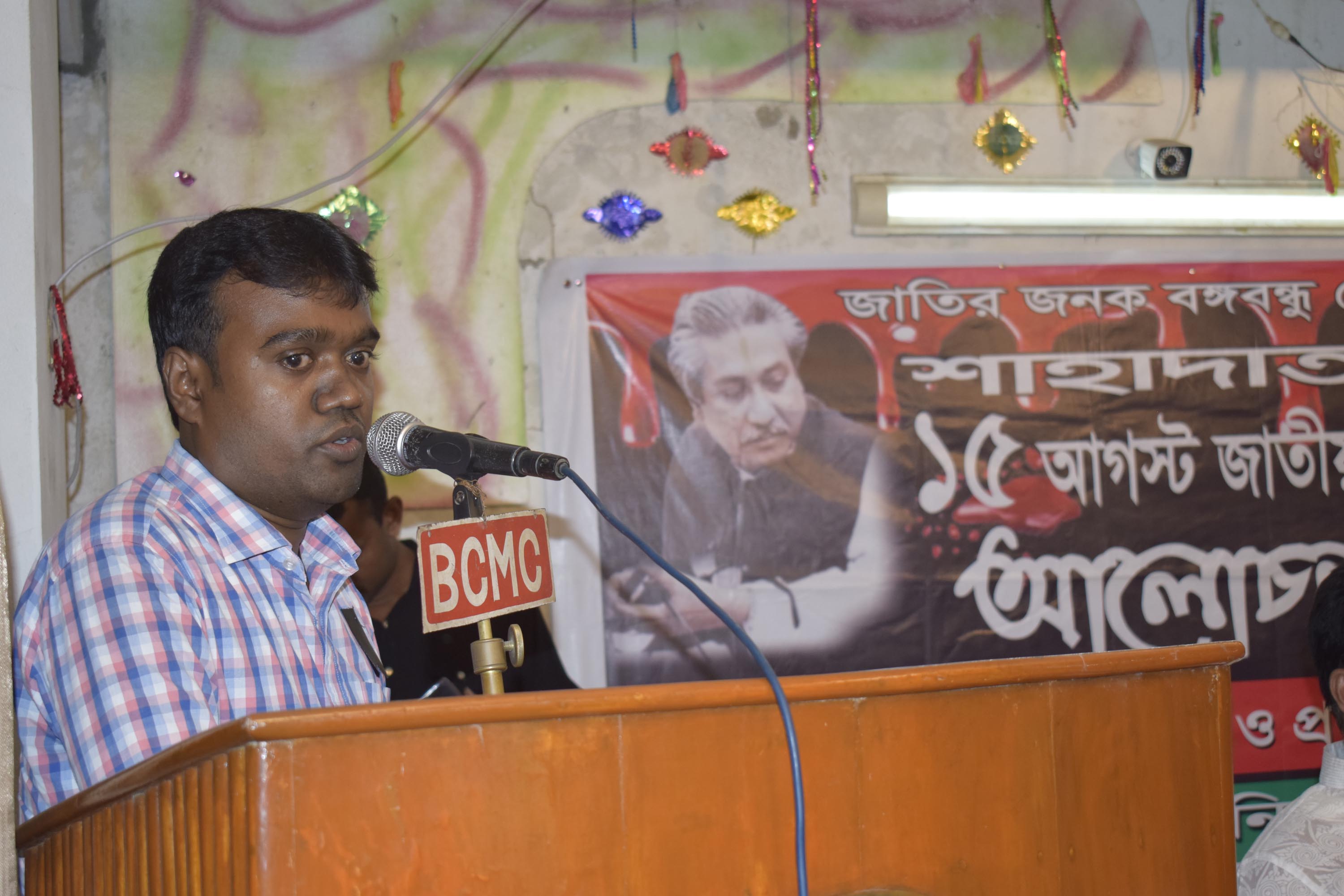 প্রধান অতিথি তার বক্তব্যে বলেন বছর ঘুরে আসা ১৫ আগস্ট আমাদের জন্য কেবল বেদনার তারিখ নয়, কোটি হৃদয়ে জ্বলে উঠবার দিন। পঁচাত্তরের ১৫ আগস্টের মধ্য দিয়ে গণতন্ত্র, অসাম্প্রদায়িকতা, সামাজিক ন্যায়বিচার ও অর্থনৈতিক মুক্তির সুমহান আদর্শগুলো ভূলুণ্ঠিত হয়েছিল। বাংলাদেশ যাত্রা করেছিল পেছনের দিকে, অন্ধকারের অভিমুখে। একাত্তরে মহান মুক্তিযুদ্ধের মাধ্যমে অর্জিত যে মুক্তির আলো আমাদের সামনের দিকে এগিয়ে দিয়েছিল ঠিক তার উল্টো পথে। এই অবস্থা থেকে মুক্তি পেতে সময় লেগেছিল দীর্ঘ একুশ বছর। আজ দেশ এগিয়ে চলছে উন্নয়ন ও সমৃদ্ধির পথে। বঙ্গবন্ধুর খুনিচক্রের বিচার সম্ভব হয়েছে। সম্ভব হয়েছে একাত্তরের যুদ্ধাপরাধীদের বিচারও। বাংলাদেশে এখন আর বিচারের বাণী নিভৃতে কাঁদে না। ঘুরে দাঁড়ানো বাংলাদেশ আরো এগিয়ে যাবে বঙ্গবন্ধুর পথে।