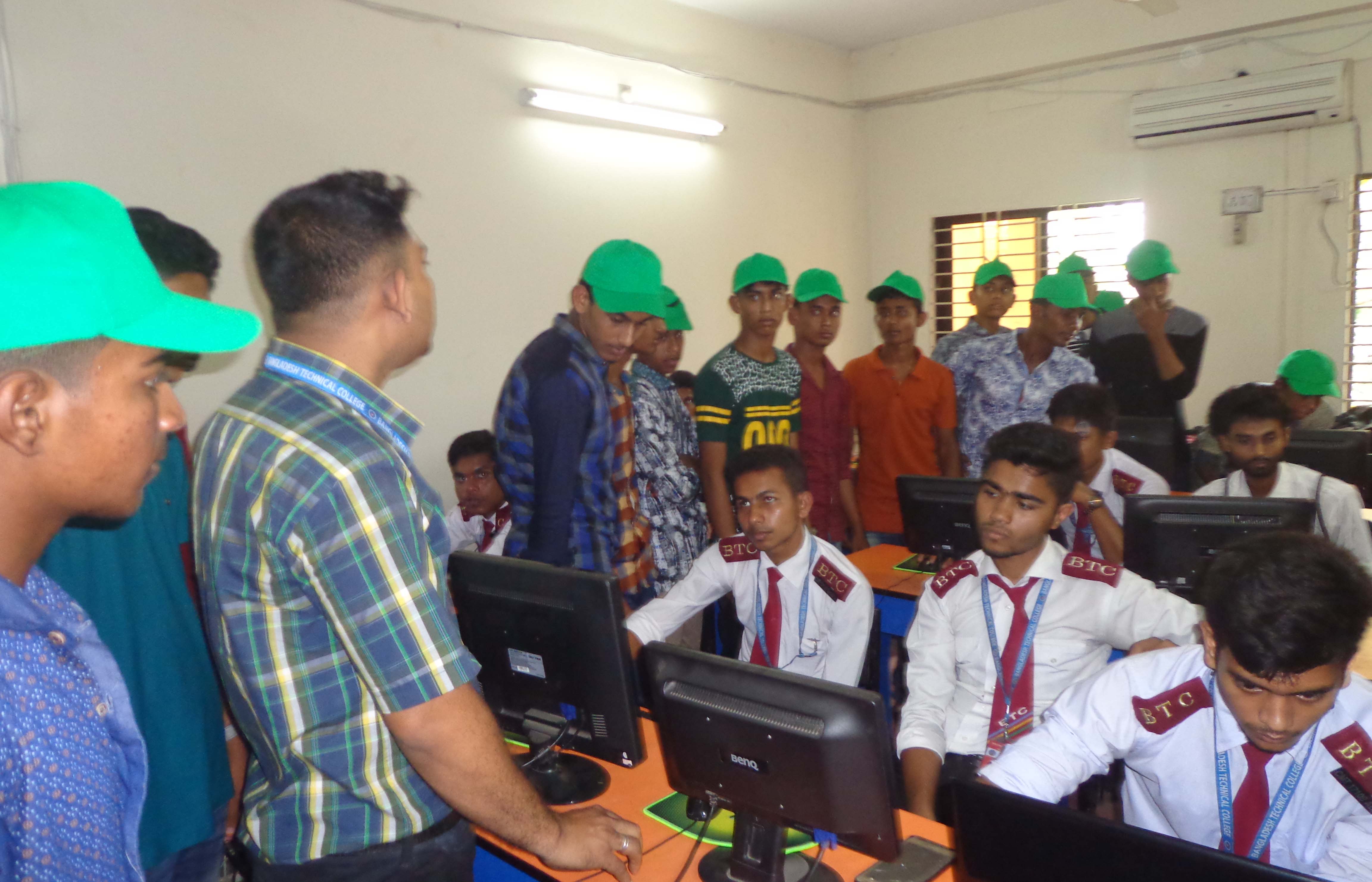 “কারিগরি শিক্ষা নিলে বিশ্ব জুড়ে কর্ম মেলে”। এই কারিগরি শিক্ষার বিস্তার ও গুরুত্ব অনুধাবনের লক্ষ্যে সম্মানিত শিক্ষক ও এসএসসি/সমমান পরীক্ষার্থীদের ধারাবাহিক পরিদর্শনের অংশ হিসেবে আজ ঝিনাইদহের দত্তনগর এস এম মাধ্যমিক বিদ্যালয় ও মাগুরার বিনোদপুর বসন্ত কুমার মাধ্যমিক বিদ্যালয়ের কিছু শিক্ষক এবং দুই শতাধিক শিক্ষার্থী আজ সকালে বাংলাদেশ টেকনিক্যাল কলেজ (বিটিসি) পরিদর্শন করেন । এসময় তারা কলেজের সকল ক্লাসরুম, ল্যাব, লাইব্রেরী, হল রুম, গেমস্ রুম, কমন রুম, সংরক্ষিত তথ্য, ছবি এবং বিভিন্ন দপ্তর ঘুরে ঘুরে দেখেন । তারা কলেজের শিক্ষার্থীদের কাছ থেকে কলেজের পড়াশোনার মান ও শিক্ষকদের কাছে ভবিষ্যৎ চাকুরির অবস্থা এবং এ্যাডমিন সেকশনে ভর্তি সংক্রান্ত প্রয়োজনীয় তথ্য জানতে চান। তারা কলেজের ল্যাবের যন্ত্রপাতি, কলেজের পরিবেশ ও কার্য্যক্রম দেখে আনন্দে অভিভূত হন এবং কলেজ প্রশাসনকে ধন্যবাদ জানান।