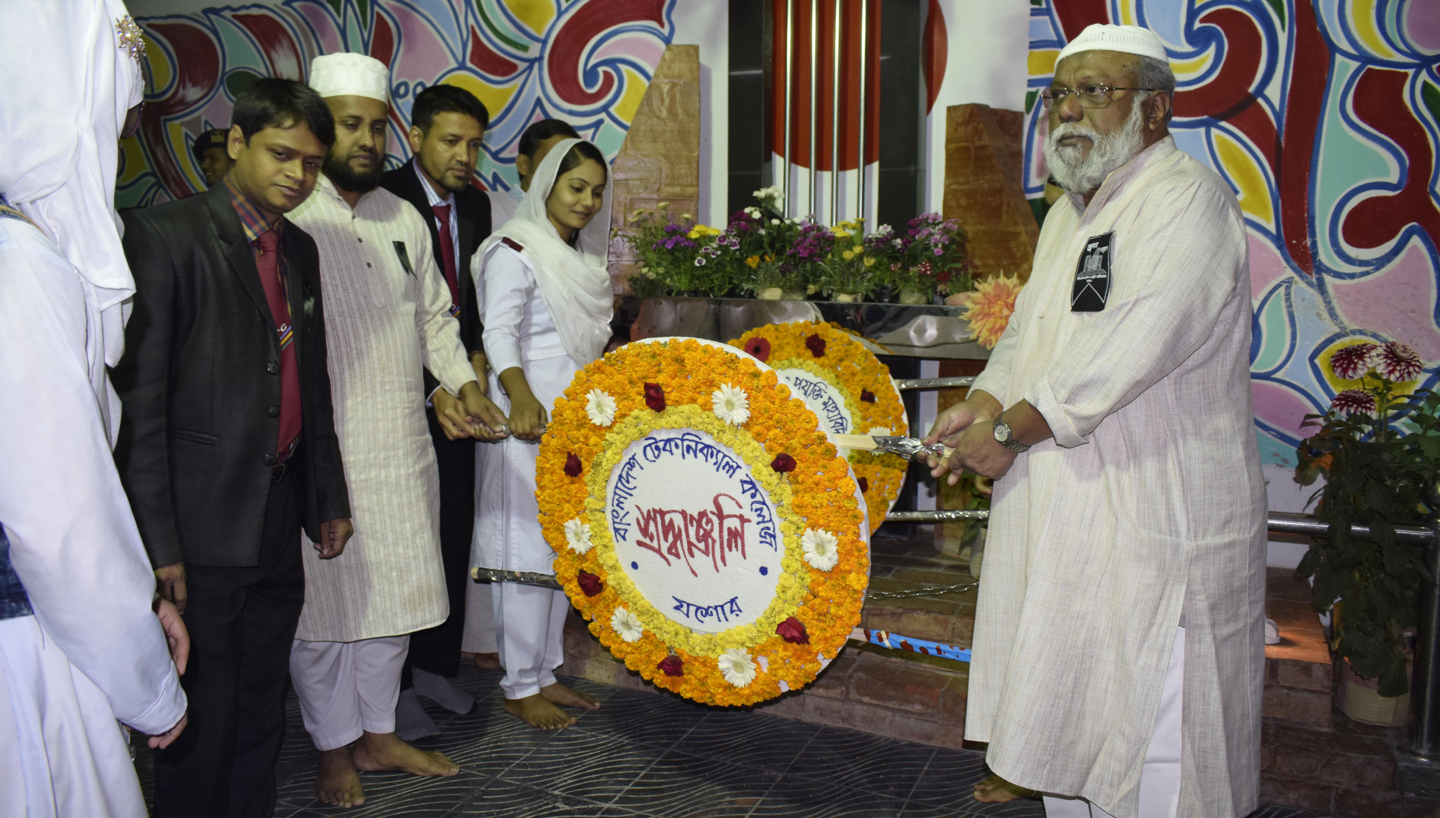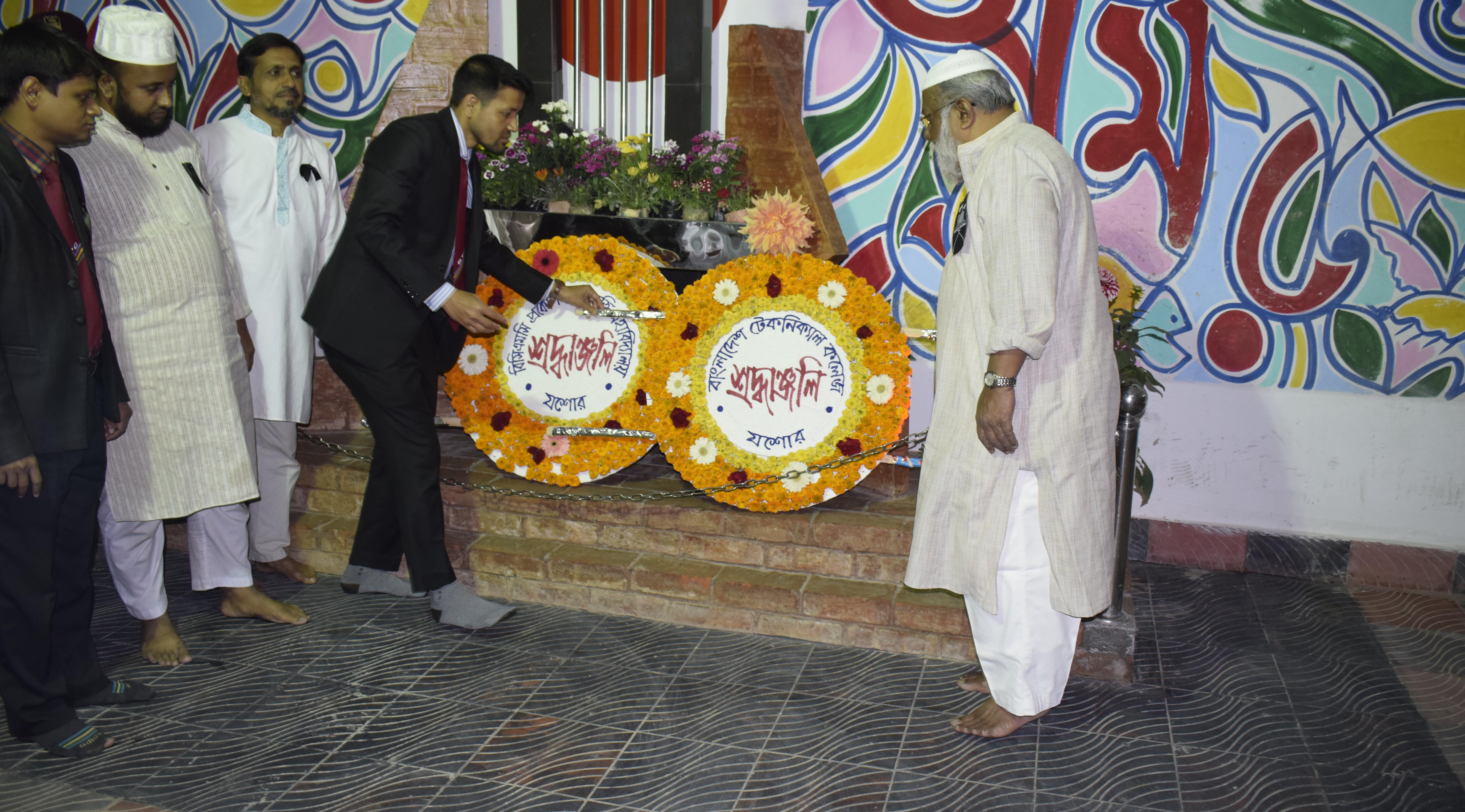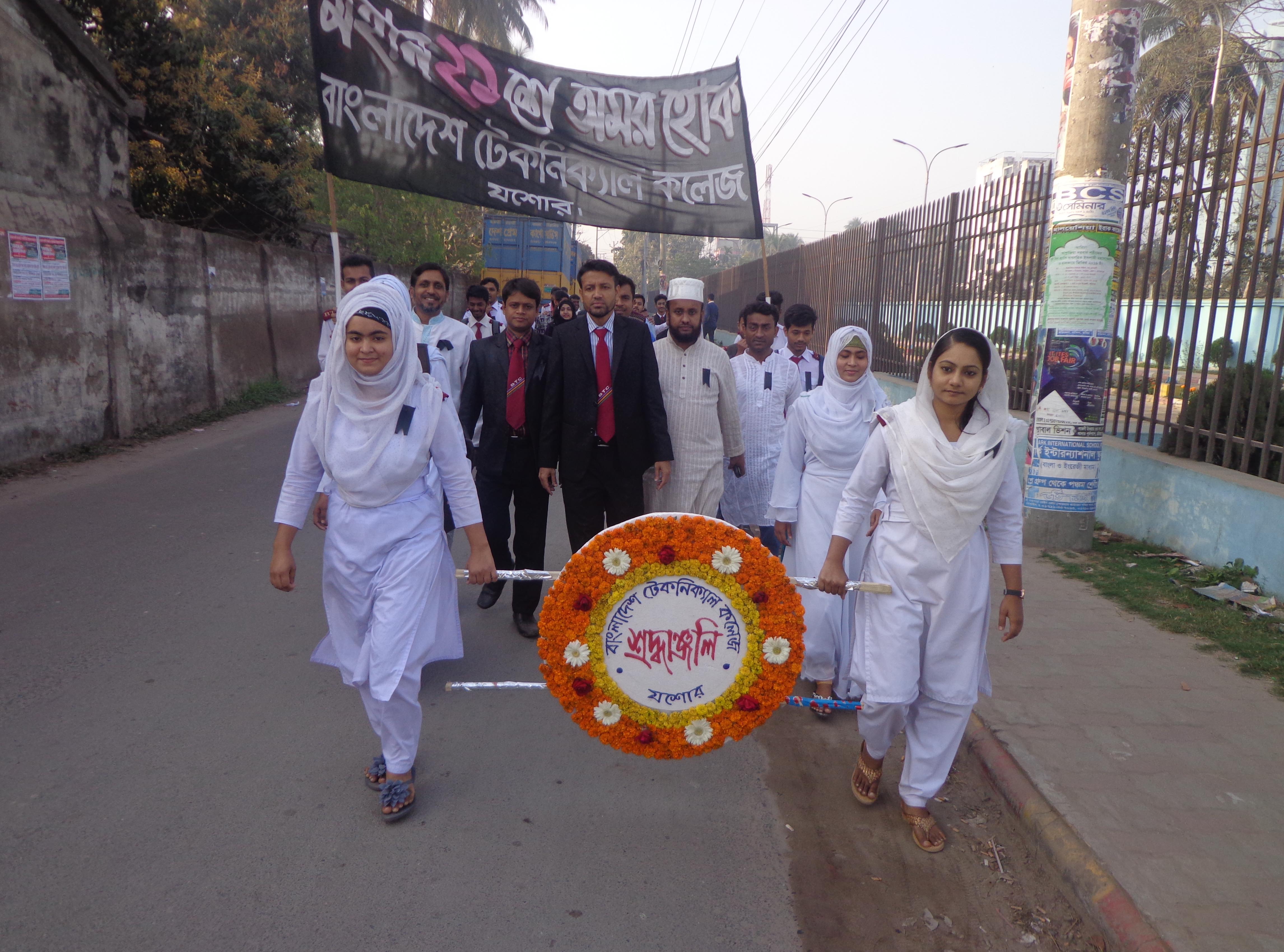 সকালে সূর্যোদয়ের সাথে সাথে জাতীয় পতাকা অর্ধনমিত করে উত্তোলনের মাধ্যমে এই কর্মসূচি শুরু হয়। পরে বিসিএমসি শহীদ মিনারে বিসিএমসি প্রকৌশল ও প্রযুক্তি মহাবিদ্যালয়ের পক্ষে শহীদ বেদীতে পুষ্পার্ঘ্য অর্পণ করেন বিসিএমসি ফাউন্ডেশনের চেয়ারম্যান প্রকৌশলী মো. আশরাফুল কবির ও অধ্যক্ষ প্রকৌশলী এস এম রেজাউল কবীর। এ সময় তাদের সাথে ছিলেন রেজিস্ট্রার অধ্যাপক মো. সারাফাত হোসেন, পরীক্ষা নিয়ন্ত্রক ইমতিয়াজ আহমেদ, সাইন্স এন্ড ইঞ্জিনিয়ারিং এর ফ্যাকাল্টি হেড অধ্যাপক ড. প্রকৌশলী দুলাল বড়ুয়া , বিজনেস এ্যাডমিনিস্ট্রেশন এন্ড ম্যানেজমেন্ট এর হেড সহকারী অধ্যাপক মো. হাসানুজ্জামান। লাইব্রেরিয়ান আব্দুল জব্বার ও শিক্ষার্থীরা। পরে বিসিএমসি শহীদ মিনারে বাংলাদেশ টেকনিক্যাল কলেজের পক্ষ থেকে শহীদ বেদীতে পুষ্প অর্পণ করেন বিসিএমসি ফাউন্ডেশনের চেয়ারম্যান প্রকৌশলী মো. আশরাফুল কবির ও কলেজটির পরিচালক প্রকৌশলী এস এম রেজাউল কবীর, কলেজের অধ্যক্ষ মো. আফজাল হোসেন, পরীক্ষা নিয়ন্ত্রক আবু হুরায়রাসহ সকল বিভাগীয় প্রধান এবং সকল শিক্ষক কর্মকর্তা ও ছাত্র-ছাত্রীবৃন্দ।