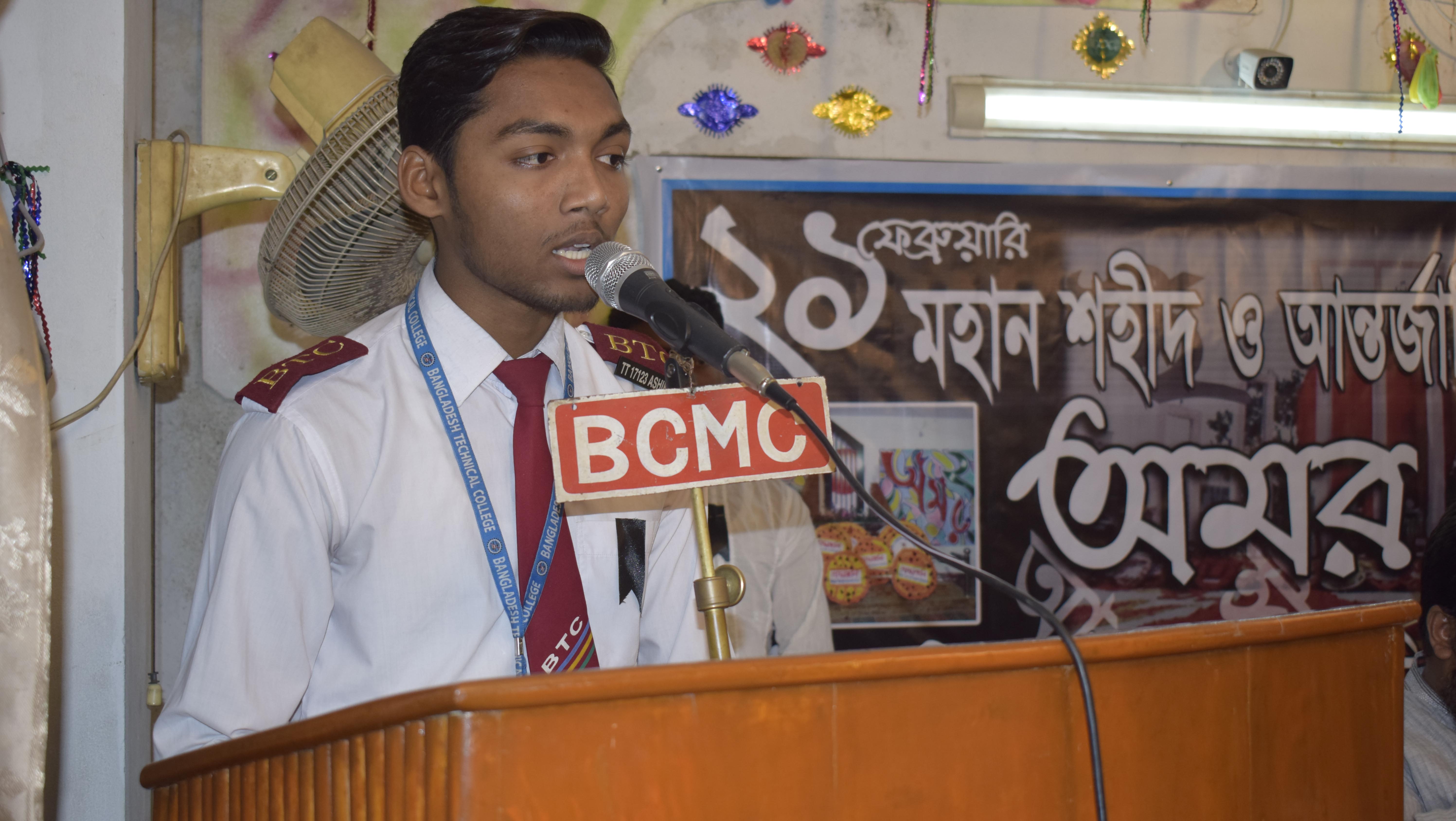 জাতীয় পতাকা অর্ধনমিতকরণ, নিজস্ব শহীদ মিনারে পুষ্পার্ঘ্য অর্পণ, আলোচনা সভা, দোয়া, দেয়াল পত্রিকার মোড়ক উন্মোচন ও রচনা প্রতিযোগিতার মাধ্যমে বিসিএমসি প্রকৌশল ও প্রযুক্তি মহাবিদ্যালয় ক্যাম্পাসে পালিত হয়েছে মহান শহিদ ও আন্তর্জাতিক মাতৃভাষা দিবস। বিসিএমসি প্রকৌশল ও প্রযুক্তি মহাবিদ্যালয় এবং বাংলাদেশ টেকনিক্যাল কলেজ যৌথভাবে এই কর্মসূচি পালন করে। এসব কর্মসূচিতে প্রধান অতিথি ছিলেন বিসিএমসি ফাউন্ডেশনের চেয়ারম্যান প্রকৌশলী মো. আশরাফুল কবির। প্রধান অতিথি তার বক্তব্যে বলেন, বাংলা ভাষা, বাংলাদেশ, ৫২, ৭১ ও জাতির জনক বঙ্গবন্ধু শেখ মুজিবের মত মৌলিক চেতনাগুলোর সাথে কোন সমঝতা বা আপোষ চলবে না। এসব চেতনাকে ধারণ করেই দেশকে এগিয়ে নিতে হবে, বাংলাদেশ এগিয়ে যাচ্ছে, একদিন সোনার বাংলাদেশ প্রতিষ্ঠিত হবেই।