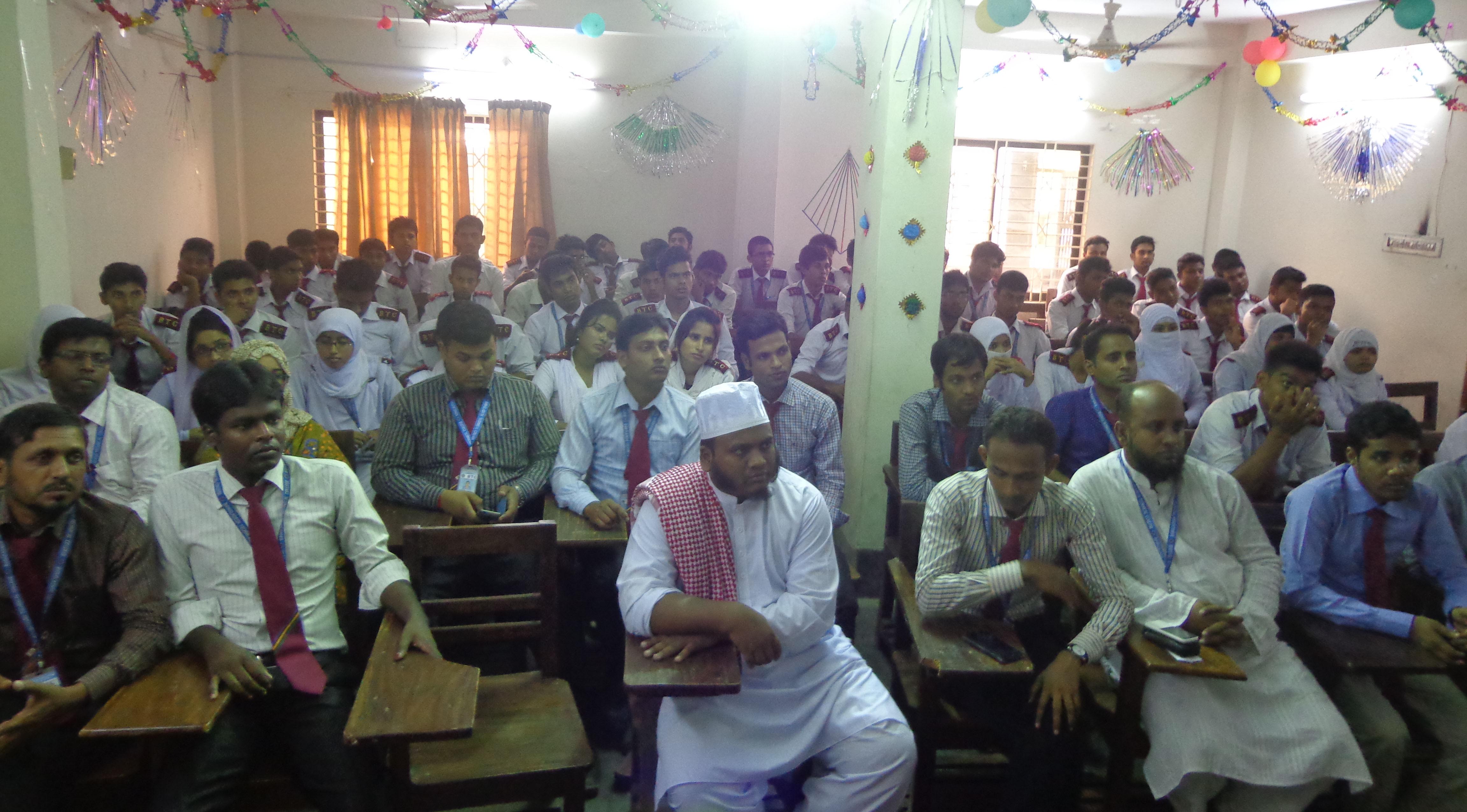 প্রধানমন্ত্রীর কার্যালয়, শিক্ষা মন্ত্রনালয় এবং কারিগরি শিক্ষা বোর্ডের নির্দেশে আজ সারা বাংলাদেশের শিক্ষা প্রতিষ্ঠানের মতো বিটিসি কলেজে জঙ্গীবাদ ও সন্ত্রাস বিরোধী সভার আয়োজন করা হয়। এই সভায় সভাপতিত্ব করেন অত্র কলেজের রেজিষ্ট্রার এসকে. এম. তহীদুজ্জামান। এছাড়া জঙ্গীবাদ ও সন্ত্রাস বিরোধী আলোচনা সভায় কুরআন ও হাদীসের আলোকে ইসলাম ও জঙ্গীবাদের অবস্থান তুলে ধরেন বিসিএমসি কলেজ কেন্দ্রীয় জামে মসজিদের খতিব ও পেশ ইমাম মুফতি মাওঃ মোঃ মাহবুবুর রহমান। এ সময় জঙ্গীবাদ ও সন্ত্রাস প্রতিরোধে শিক্ষার্থীদের করণীয় বিভিন্ন দিক তুলে আলোচনা করেন অত্র কলেজের পরীক্ষা নিয়ন্ত্রক মোঃ আবু হুরায়রা, তিনি বলেন মানুষ হত্যা করে ইসলাম প্রতিষ্ঠা করা যায় না। এছাড়া বক্তব্য দেন অত্র কলেজের বিজনেস এডমিনিস্ট্রেশন, সোস্যাল সাইন্স এন্ডা রিলেটেড সাবজেক্টস বিভাগের প্রধান, তানজিল মাহমুদ, কম্পিউটার ইঞ্জিনিয়ারিং এন্ড টেকনোলজি বিভাগের প্রধান , প্রকৌশলী জি. এম. ইসরাফীল ইসলাম, সিভিল এন্ড কনস্ট্রাকশন ইঞ্জিনিয়ারিং বিভাগের প্রধান, প্রকৌশলী মো. আসিফ হাসান, ইইটি ইঞ্জিনিয়ারিং বিভাগের প্রধান, প্রকৌশলী রোহিদুল ইসলাম এবং গার্মেন্টস এন্ড টেক্সটাইল ইঞ্জিনিয়ারিং বিভাগের প্রধান প্রকৌশলী শেখ মো. মাহমুদুল হাসান। তারা ছাত্রছাত্রীদেরকে ক্লাসে মনোযোগী হওয়া, ক্লাব কার্যক্রমে অংশগ্রহন এবং ক্লাসে নিয়মিত হওয়ার প্রতি জোর দেন। ছাত্রছাত্রীদের পক্ষ থেকে জঙ্গীবাদ ও সন্ত্রাসের বিরুদ্ধে আপোশহীনতার কথা উল্লেখ করে বক্তব্য দেন টেক্সটাইল ৩য় পর্বের অপূর্ব কুমার রায় ও সুরাইয়া ইয়াসমিন, কম্পিউটার ৩য় পর্বের আব্দুল্লাহ আল মামুন এবং সিভিল ৬ষ্ঠ পর্বের সুজন হোসেন ।