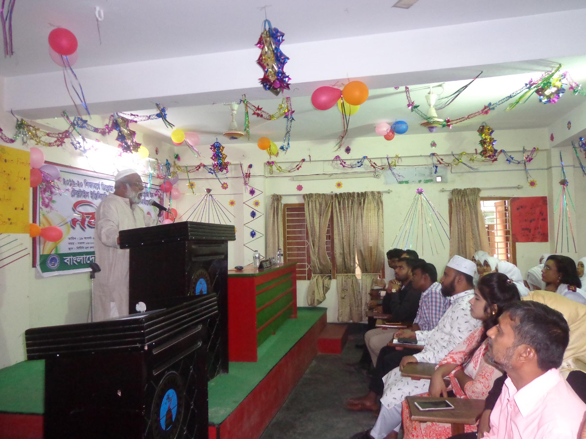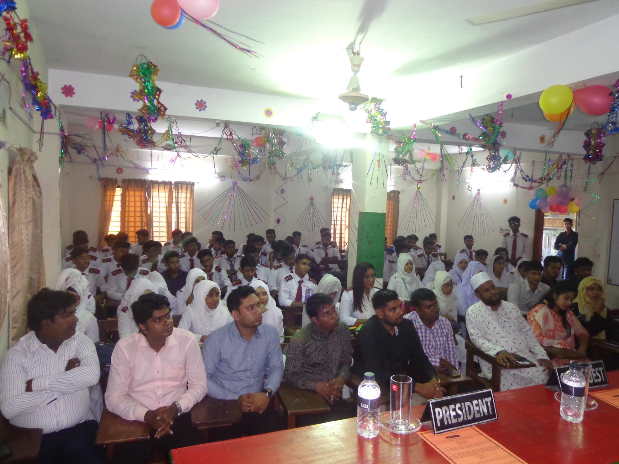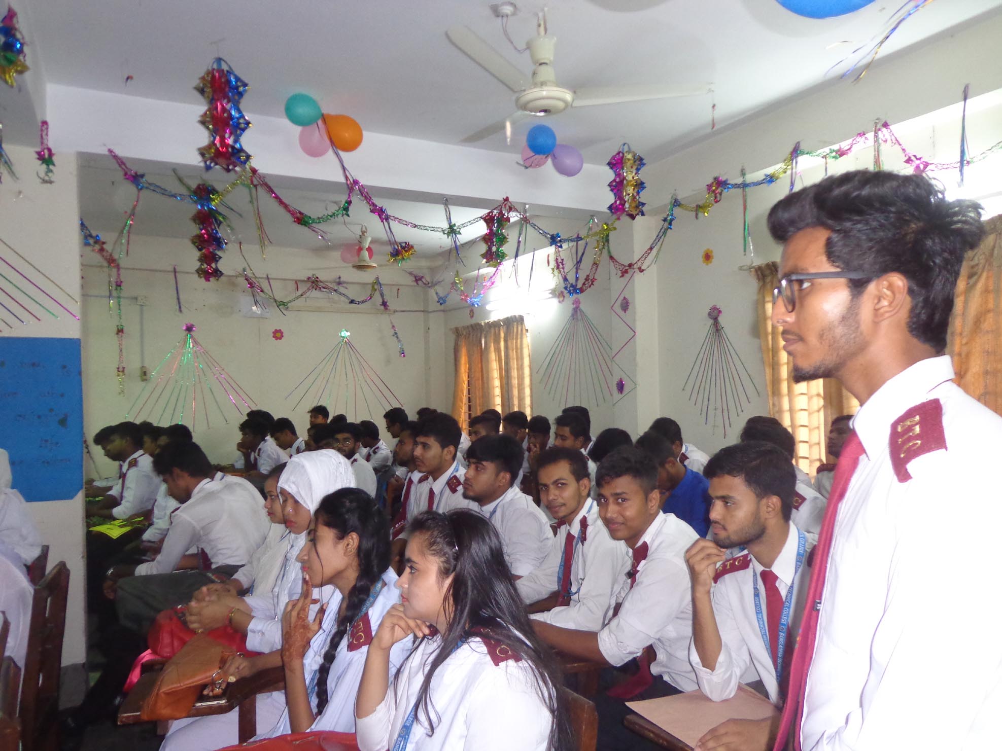 এর আগে নবীনদের ফুল দিয়ে বরণ করে নেওয়া হয় এবং তাদের উদ্দেশ্যে অভিনন্দন পত্র পাঠ করা হয়