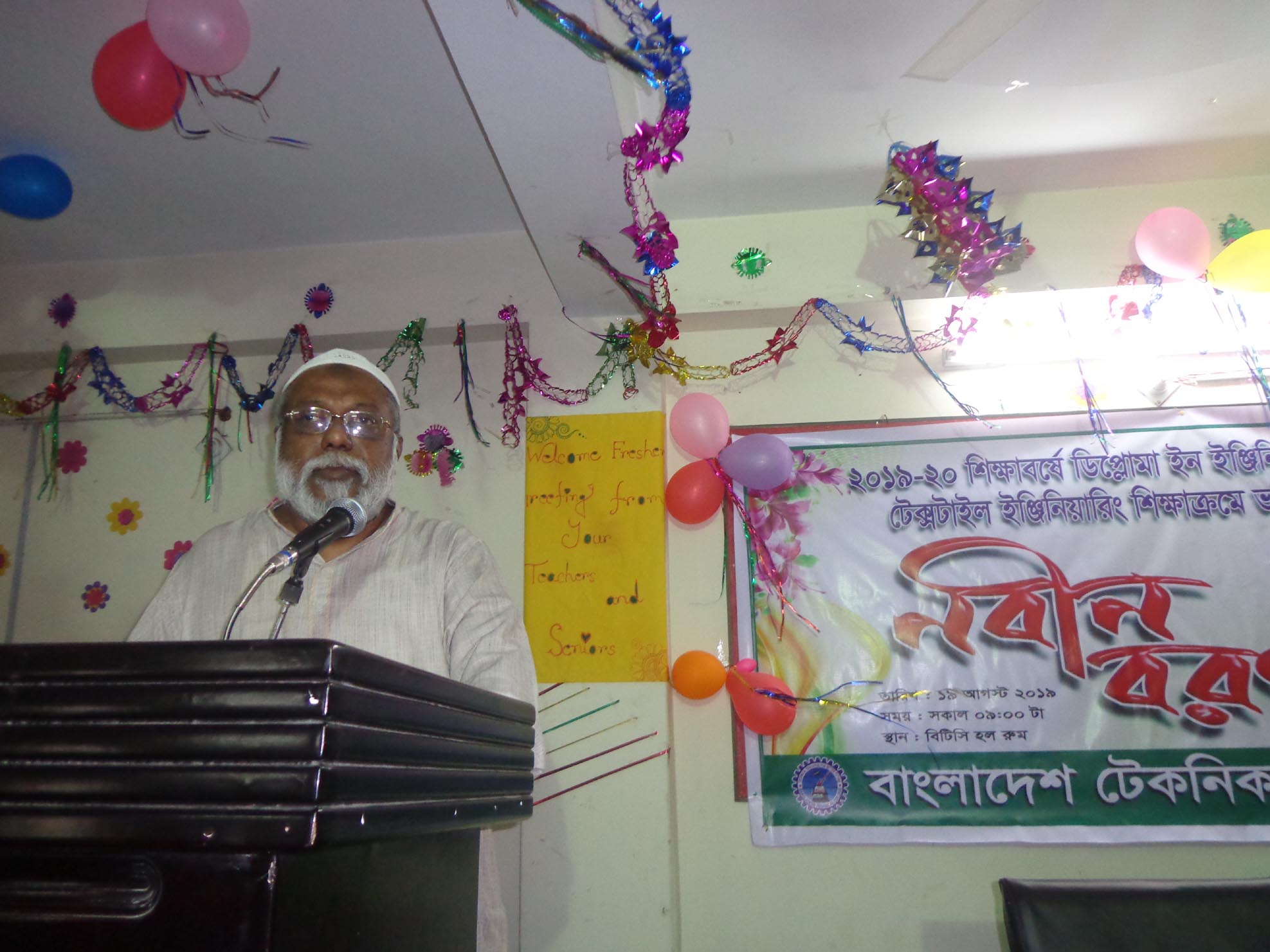 বাংলাদেশ টেকনিক্যাল কলেজের চেয়ারম্যান প্রকৌশলী মোঃ আশরাফুল কবির বলেন, নতুনদেরকে দায়িত্ব নিতে হবে প্রযুক্তি নির্ভর আগামীর বাংলাদেশকে গড়ার এবং তোমরা যারা আজ এই কারিগরি শিক্ষা গ্রহন করতে এসেছো তোমরাই সেই জ্ঞানকে কাজে লাগিয়ে নিজেদের দেশের ভাগ্য পরিবর্তন করবে। বিটিসি এমন একটি শিক্ষা প্রতিষ্ঠান যেখানে শিক্ষার্থীদেরকে সকল প্রকার সুযোগ সুবিধা প্রদানসহ যুগোপযোগী করে গড়ে তোলবার প্রচেষ্টা থাকে। এখানকার শিক্ষক ব্যবস্থাপনা পরিষদ সর্বদাই শিক্ষার্থীদের কল্যাণ কামনায় কাজ করে থাকেন। আগস্ট ক্লাস শুরু থেকে আজ ১৯ আগস্ট এর মধ্যে তোমরা তোমাদের নিজেদের পরিবর্তন সকলের আন্তরিকতা সবই উপলব্ধি করতে পেরেছো