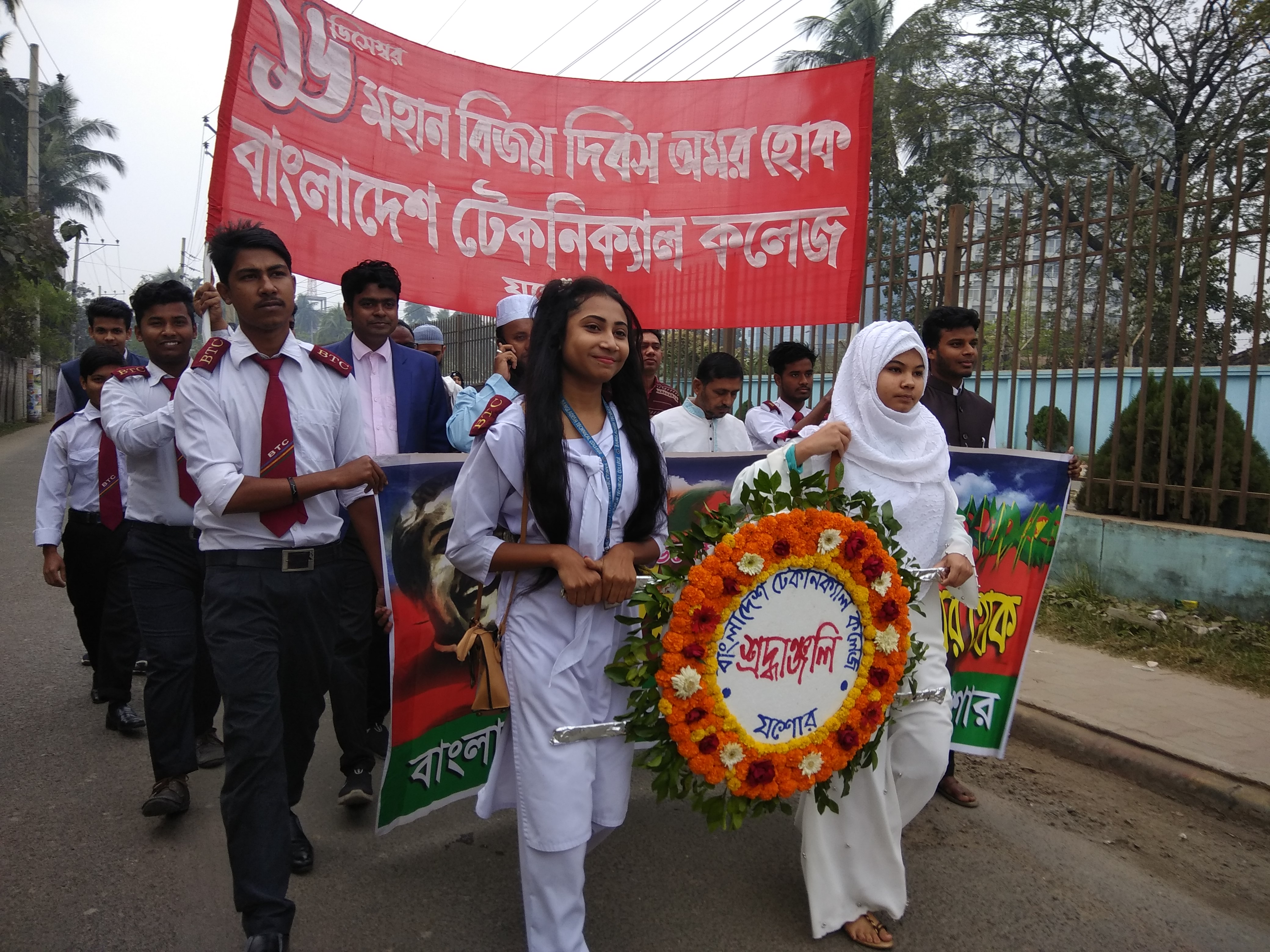 মহান বিজয় দিবস ২০১৯ এ শোভাযাত্রা, বিজয় স্মৃতিস্তম্ভে শ্রদ্বার্ঘ অর্পণ করে বাংলাদেশ টেকনিক্যাল কলেজ (বিটিসি)।