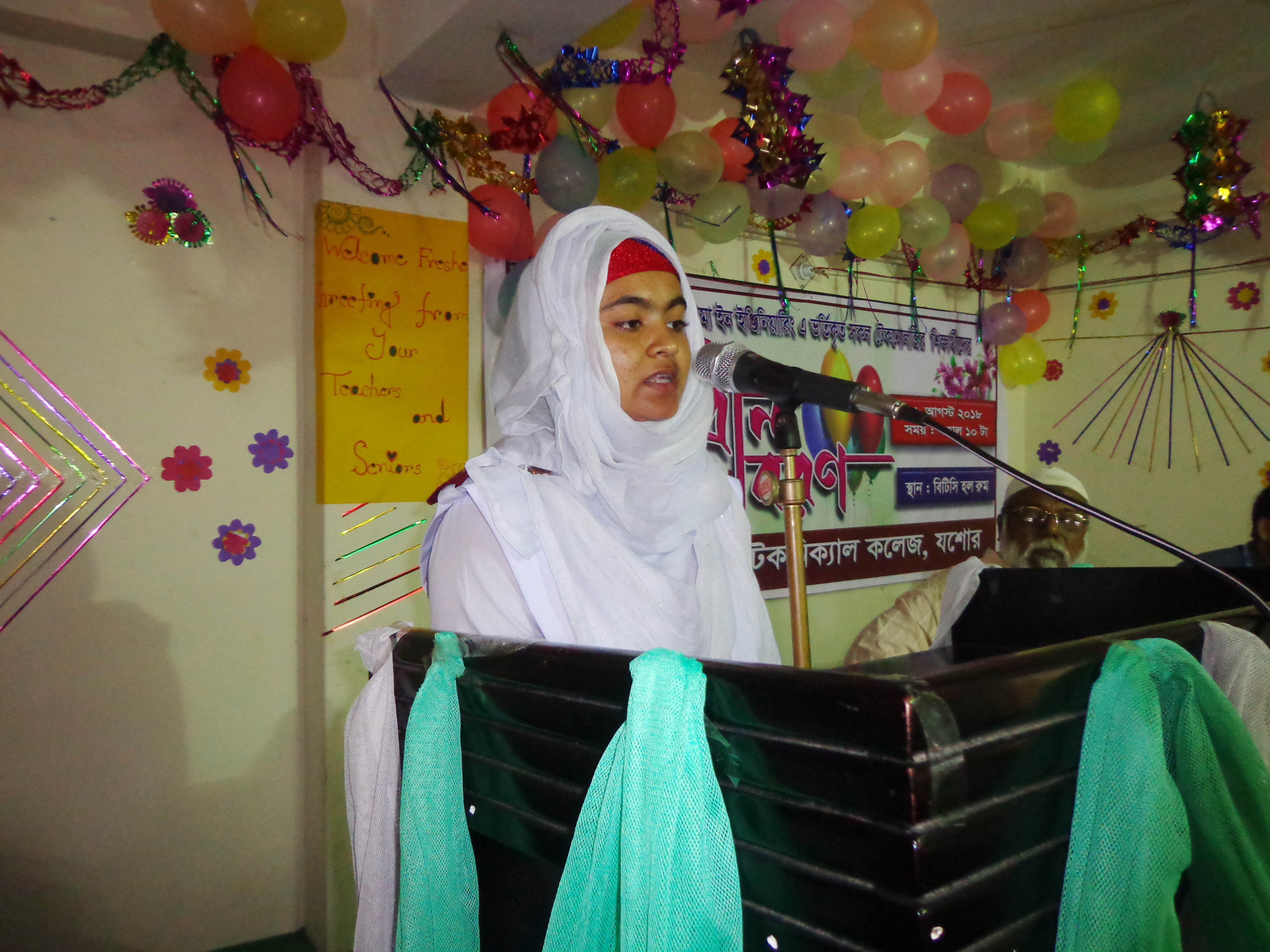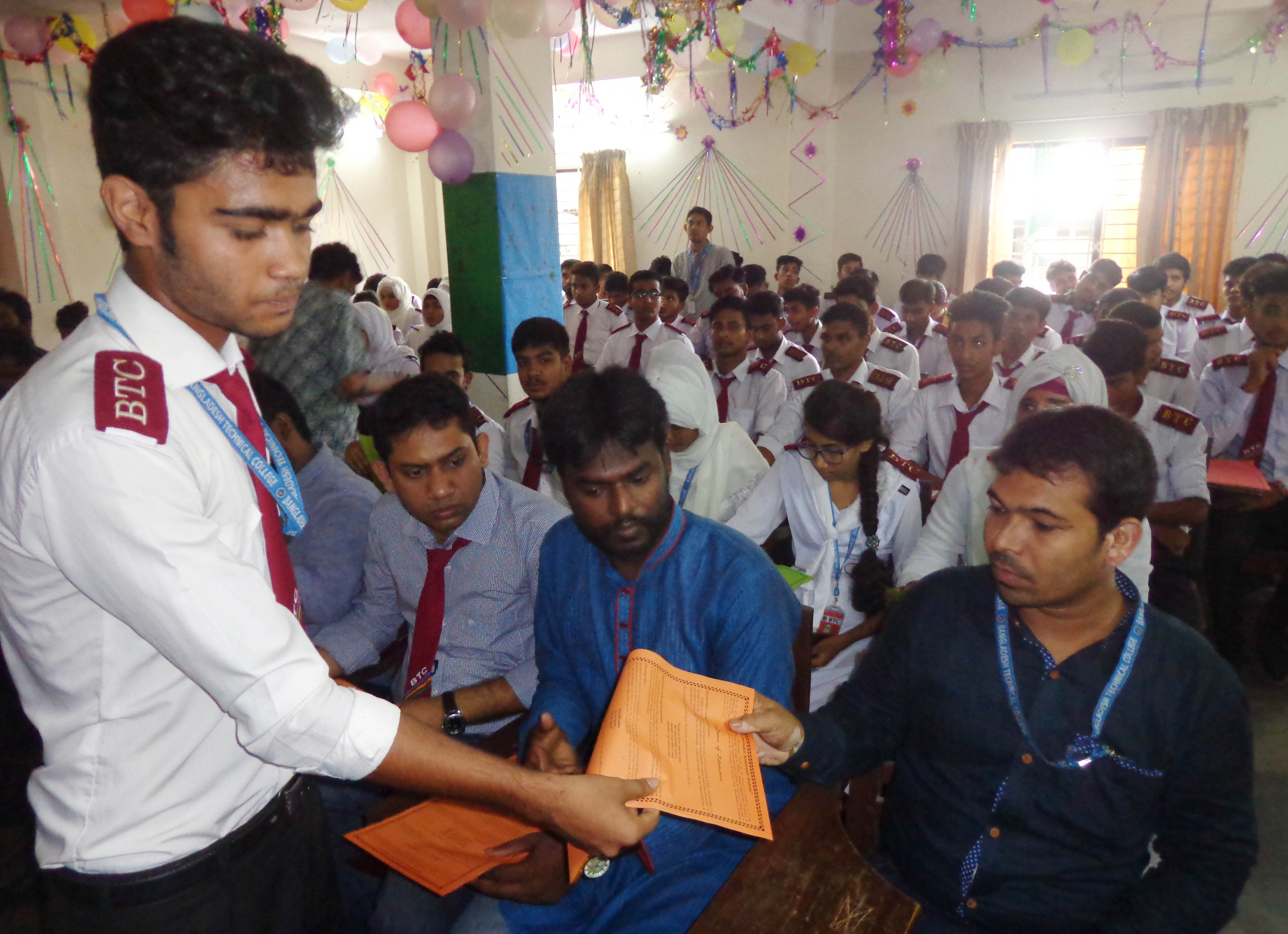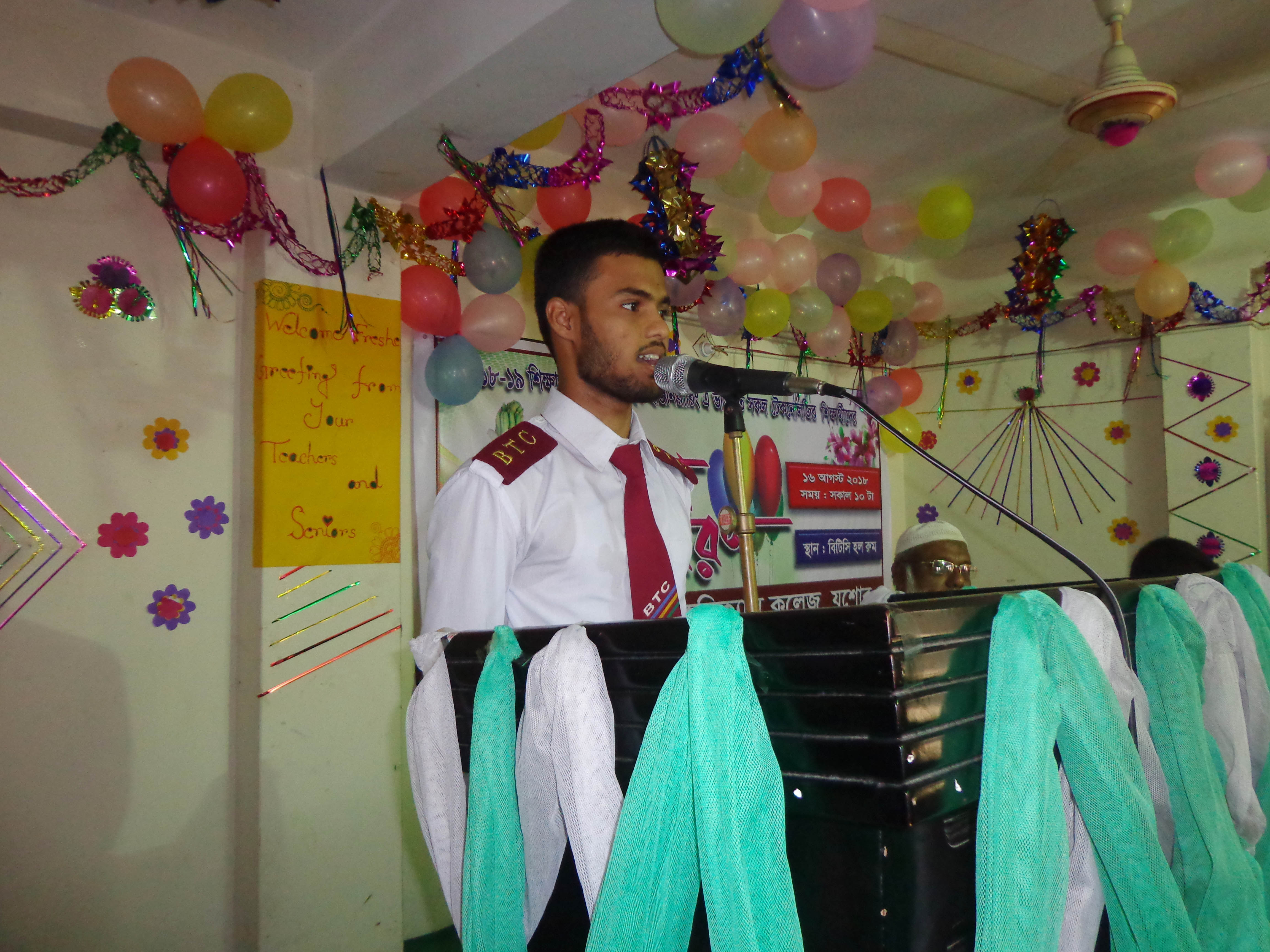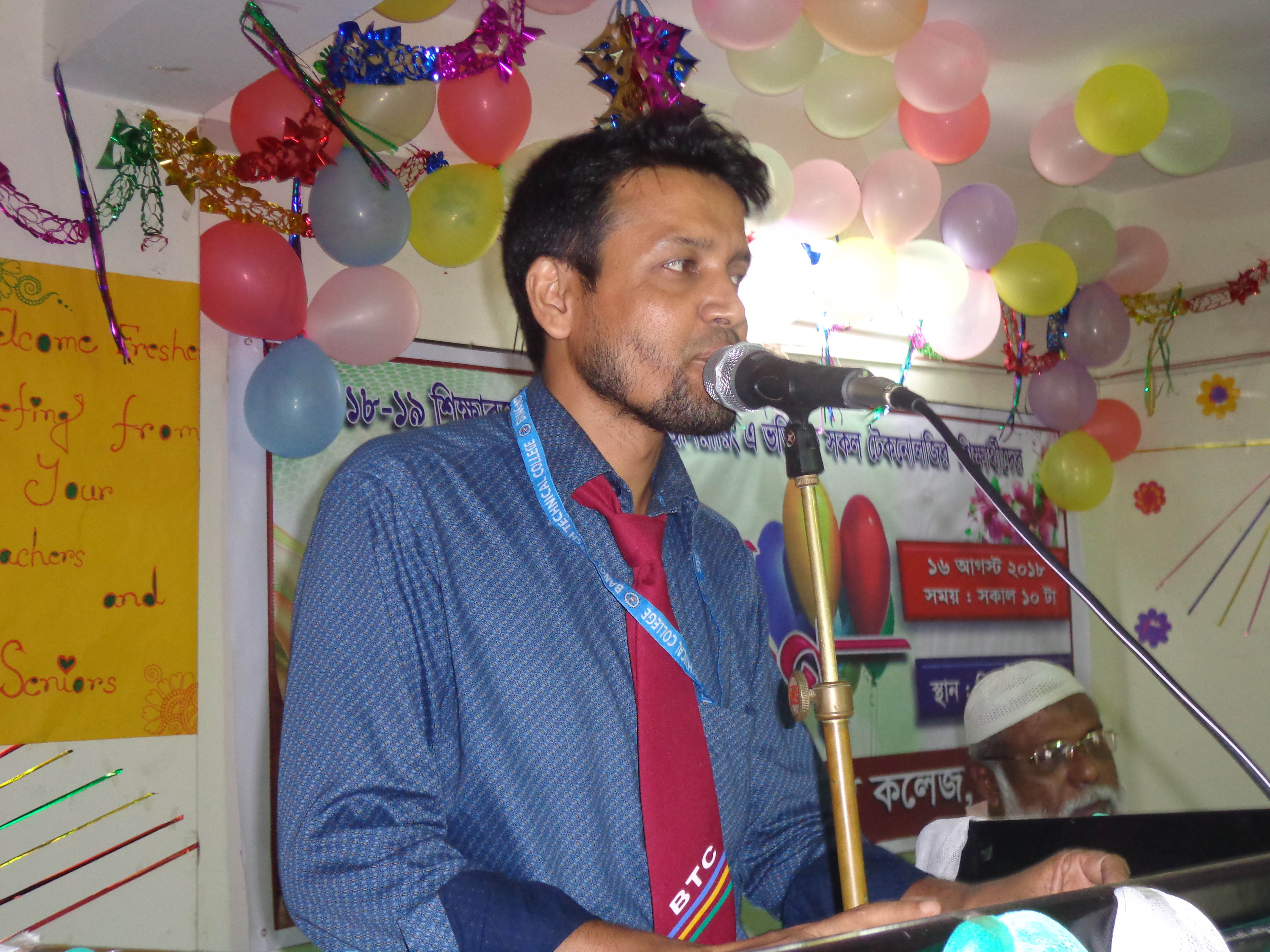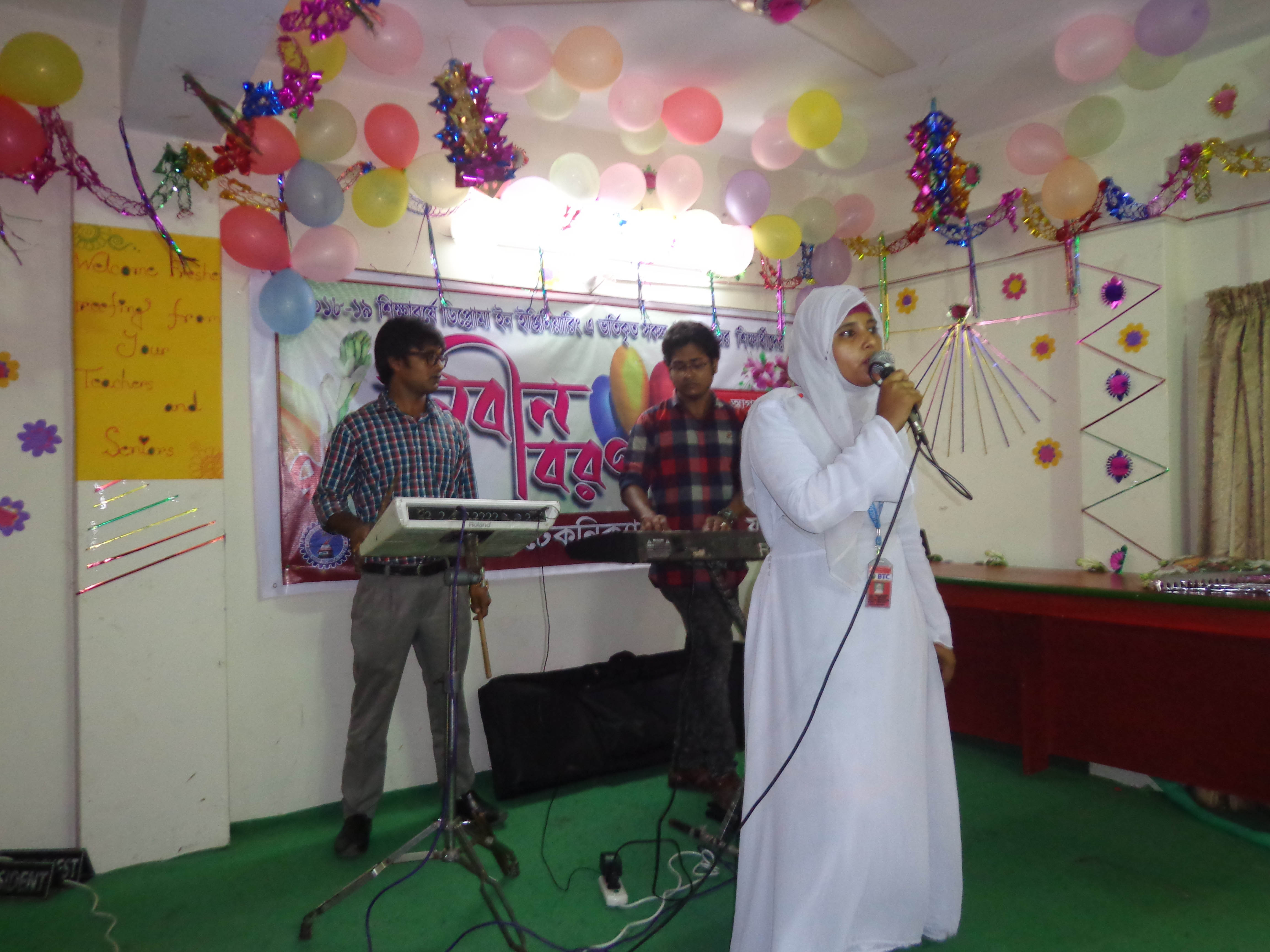 ২০১৮-১৯ শিক্ষাবর্ষে ডিপ্লোমা ইন ইলেকট্রিক্যাল, সিভিল, কম্পিউটার, গার্মেন্টস ও টেক্সটাইল ইঞ্জিনিয়ারিং ভর্তিকৃত ছাত্র-ছাত্রীদের ফুল দিয়ে আনুষ্ঠানিকভাবে বরণ করে নেন প্রবীন শিক্ষার্থীদের থেকে কম্পিউটার ৩য় পর্বের ইমন ও আবির। অনুষ্ঠানে পুষ্প, অভিনন্দন বার্তা আর অতিথিদের বক্তব্যে উজ্জীবিত ছিল নবীন শিক্ষার্থীরা।
