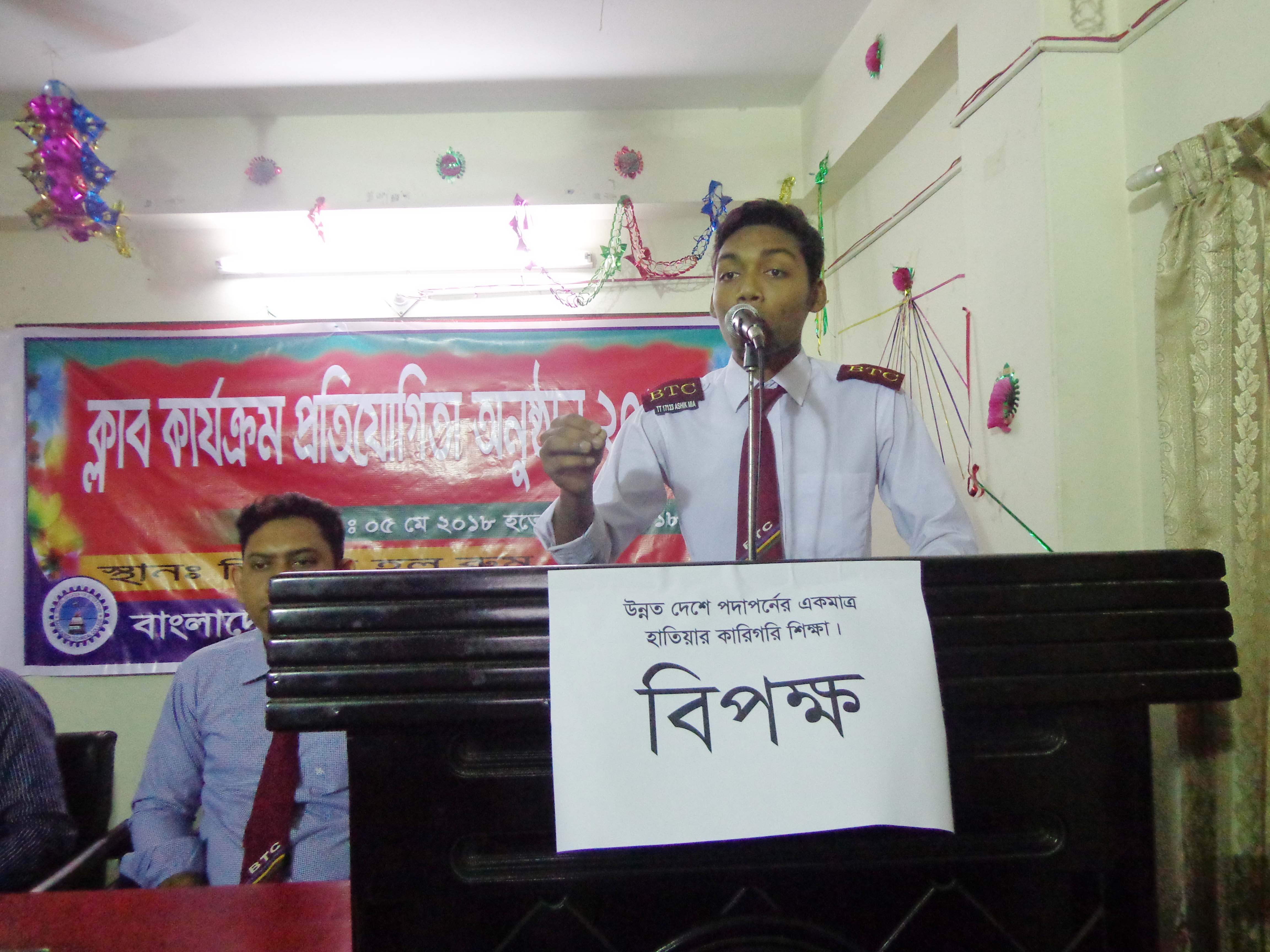 আজ সকালে বিটিসির হলরুমে বিটিসি ডিবেটিং ক্লাবের আয়োজনে  বিতর্ক প্রতিযোগিতা অনুষ্ঠিত হয়। বিতর্কের বিষয় ছিলো “উন্নত দেশে পদাপর্নের একমাত্র হাতিয়ার কারিগরি শিক্ষা”।
