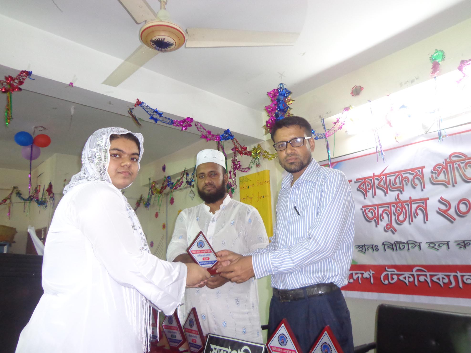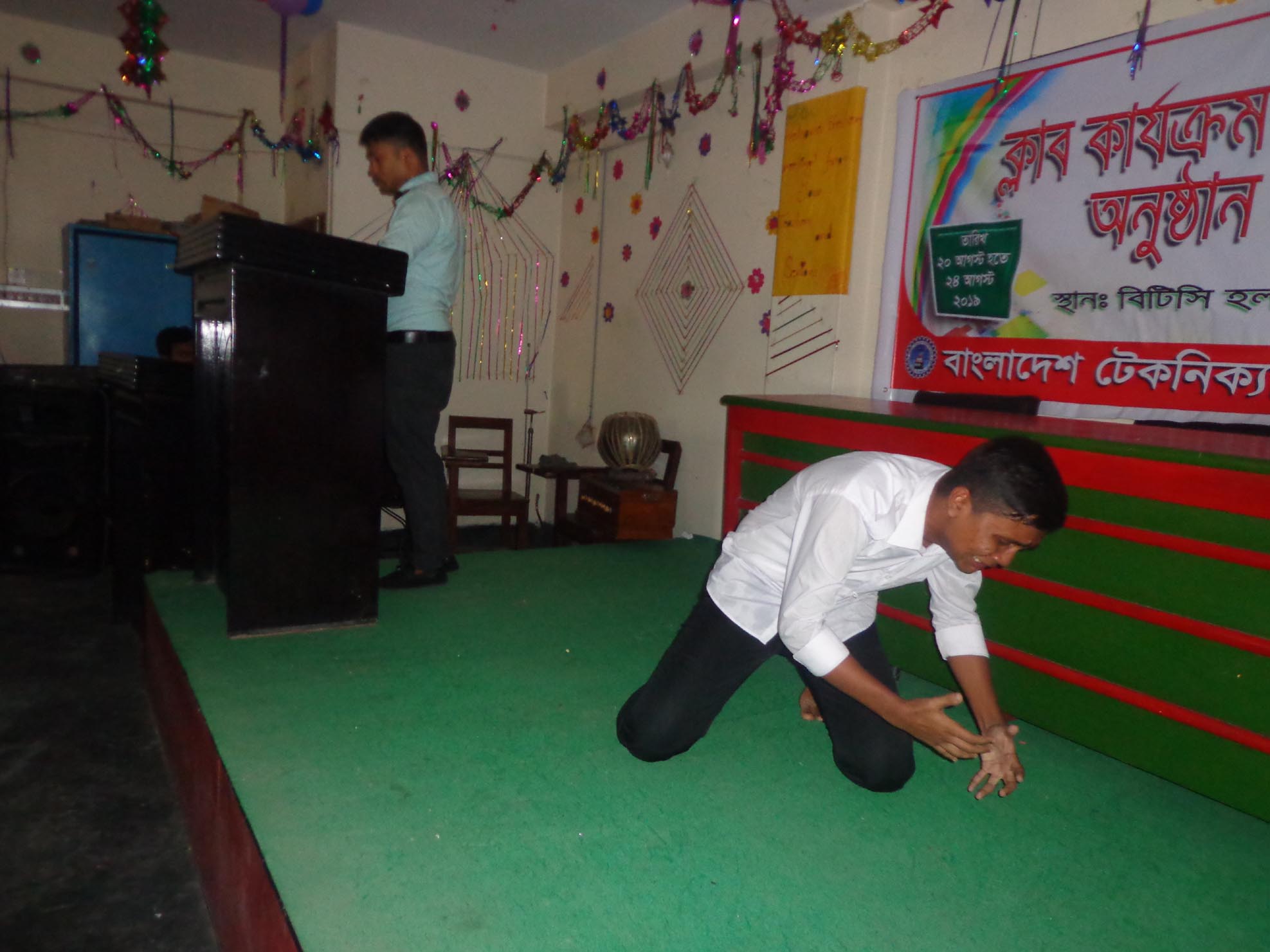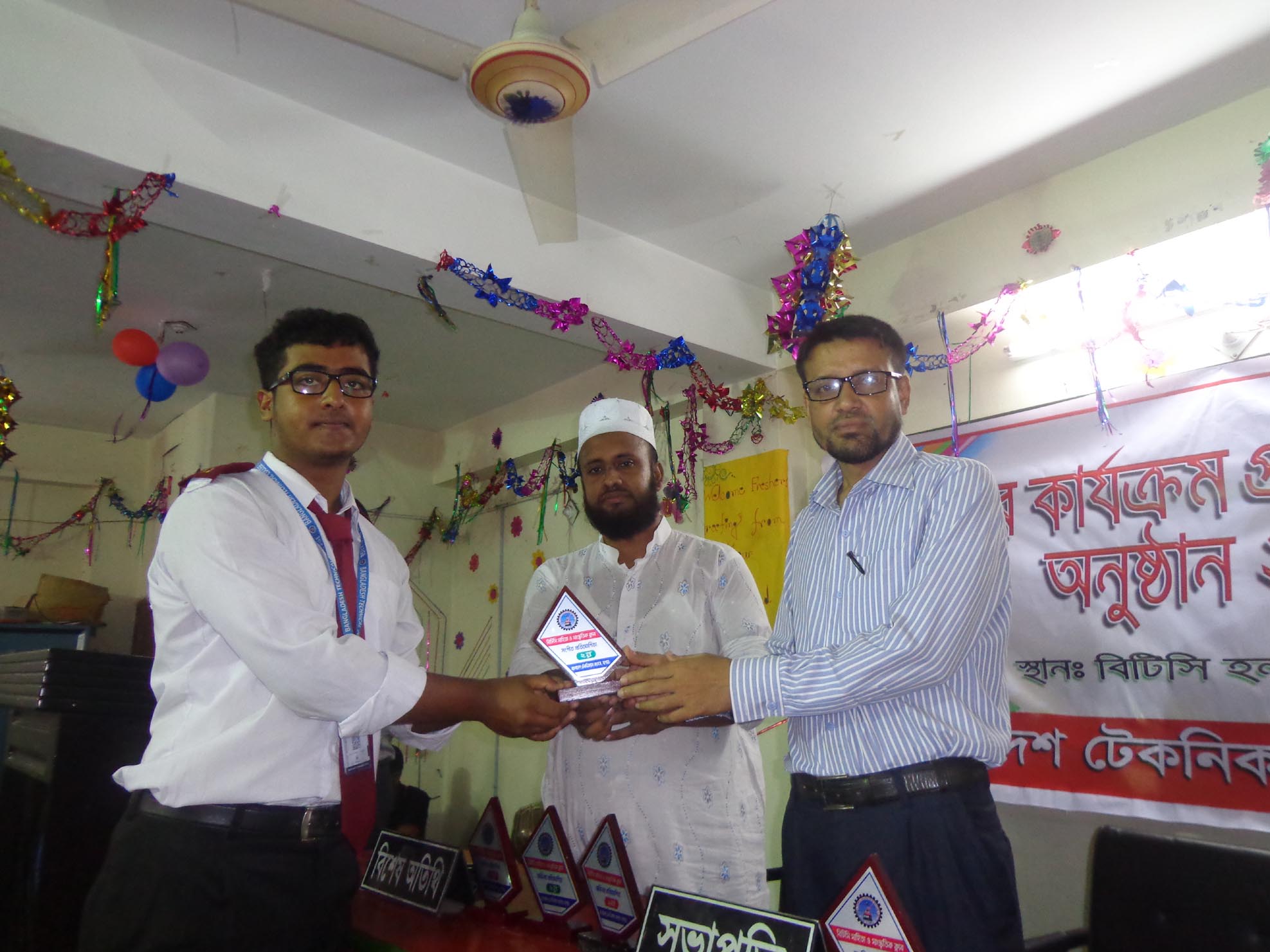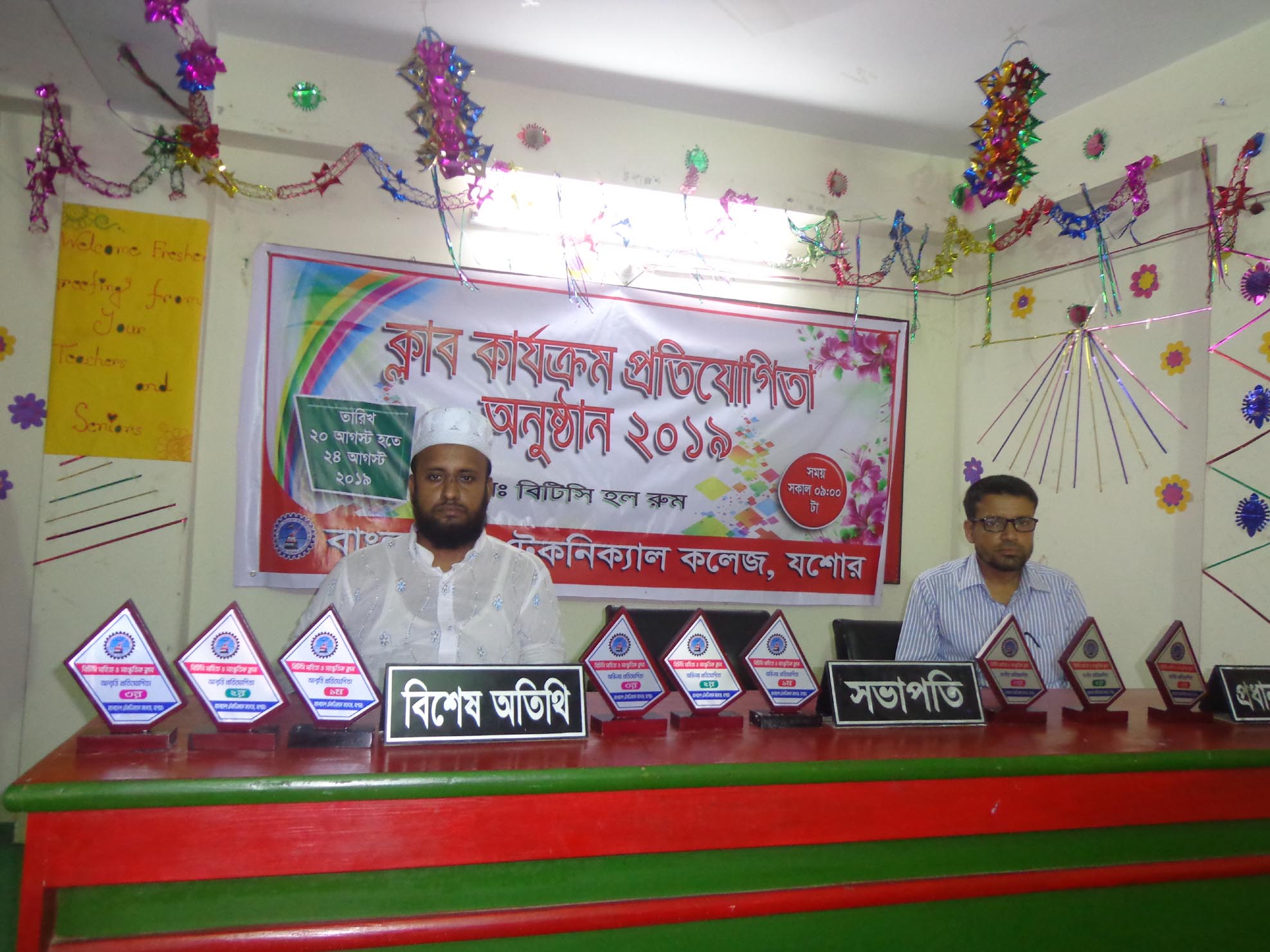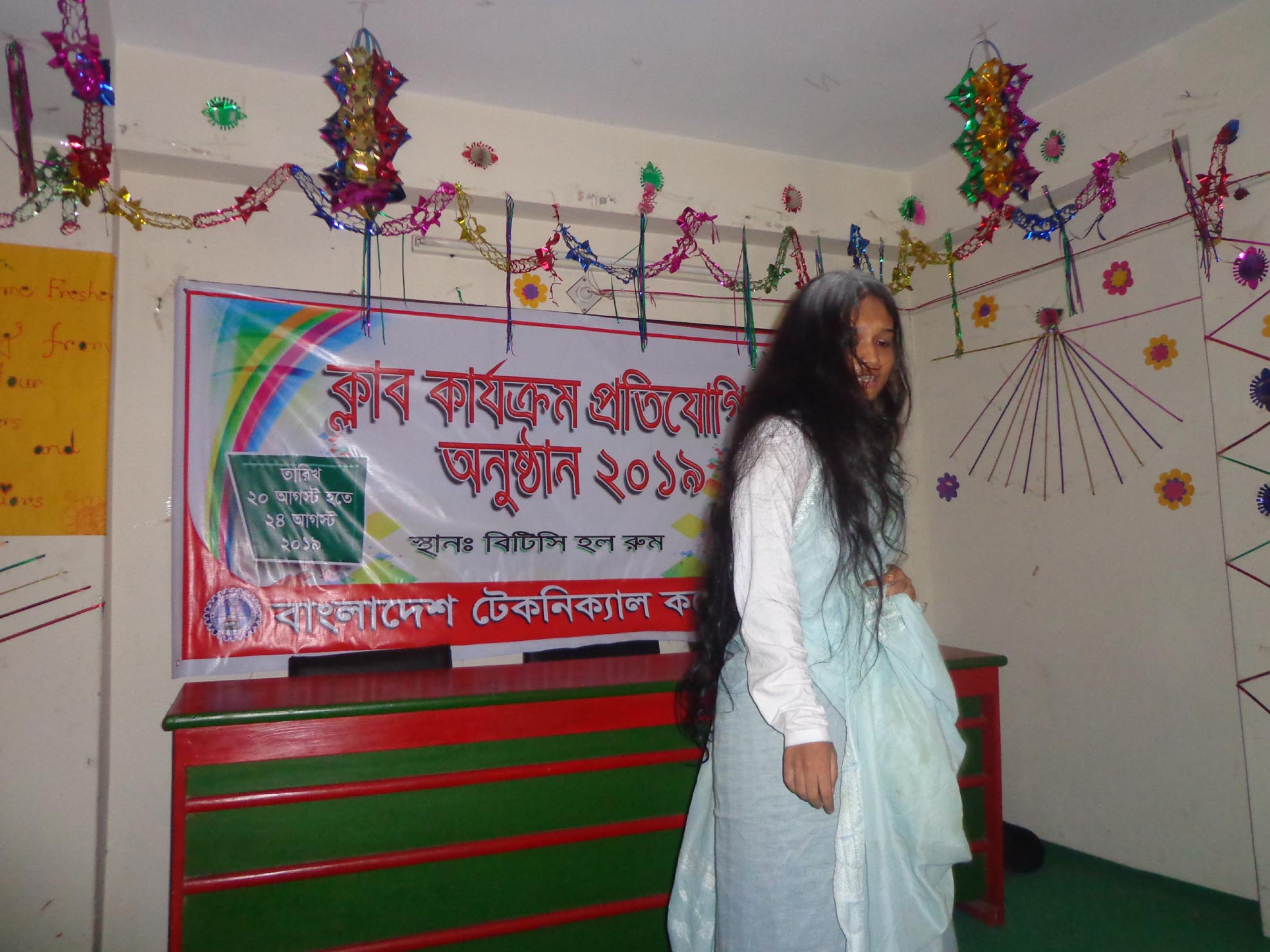আজ সকালে বিটিসির হলরুমে বিটিসি লিটারেচার এন্ড কালচারাল ক্লাবের আয়োজনে আবৃত্তি, সঙ্গীত ও অভিনয় প্রতিযোগিতা অনুষ্ঠিত হয়। ক্লাব সভাপতি মোঃ জাহিদুল ইসলাম এর সভাপতিত্বে ও ক্লাব সচিব মো. জাফর ইকবাল এর প্রাণবন্ত উপস্থাপনায় পৃথকভাবে অনুষ্ঠিত এ প্রতিযোগিতায় বিভিন্ন বিভাগের শিক্ষার্থীরা অংশ গ্রহণ করে। পৃথকভাবে অনুষ্ঠিত এ প্রতিযোগিতায় বিশেষ অতিথি মো. আবু হুরায়রা পরীক্ষা নিয়ন্ত্রক বাংলাদেশ টেকনিক্যাল কলেজ, প্রধান আতিথি হিসেবে উপস্থিত ছিলেন বাংলাদেশ টেকনিক্যাল কলেজ এর অধ্যক্ষ মোঃ আফজাল হোসেন এবং সভাপতি হিসেবে উপস্থিত ছিলেন বিটিসি লিটারেচার এন্ড কালচারাল ক্লাবের সভাপতি মোঃ জাহিদুল ইসলাম । কবিতা আবৃত্তি প্রতিযোগিতায় ১ম, ২য় ও ৩য় স্থান অধিকার করেন যথাক্রমে ডিপ্লোমা ইন কম্পিউটার ইঞ্জিনিয়ারিং ৩য় পর্বের তনিমা তাসমিন তন্নী, ডিপ্লোমা ইন কম্পিউটার ইঞ্জিনিয়ারিং ৫ম পর্বের মোঃ হোসেন চৌধুরী সবুজ ও ডিপ্লোমা ইন কম্পিউটার ইঞ্জিনিয়ারিং ১ম পর্বের তৌহিদুজ্জামান অপি। সঙ্গীতে ১ম, ২য় ও ৩য় স্থান অধিকার করেন যথাক্রমে ডিপ্লোমা ইন কম্পিউটার ইঞ্জিনিয়ারিং ১ম পর্বের আমিনা আইরিন নাহার, ডিপ্লোমা ইন কম্পিউটার ইঞ্জিনিয়ারিং ৩য় পর্বের জি.এম সালমান ও ডিপ্লোমা ইন সিভিল ইঞ্জিনিয়ারিং ৩য় পর্বের উম্মে তামান্না। অভিনয়ে ১ম, ২য় ও ৩য় স্থান অধিকার করেন যথাক্রমে ডিপ্লোমা ইন কম্পিউটার ইঞ্জিনিয়ারিং ৩য় পর্বের তনিমা তাসমিন তন্নী, ডিপ্লোমা ইন কম্পিউটার ইঞ্জিনিয়ারিং ১ম পর্বের আব্দুল্লাহ আল রাফিম ও ডিপ্লোমা ইন কম্পিউটার ইঞ্জিনিয়ারিং ৫ম পর্বের মো: হোসেন চৌধুরী সবুজ। আবৃত্তি প্রতিযোগিতায় বিচারকের দায়িত্ব পালন করেন জনাব নাজমুল আলম, আইনুন নাহার ও প্রকৌশলী চিন্ময় মজুমদার। সঙ্গীত প্রতিযোগিতায় বিচারকের দায়িত্ব পালন করেন অমিত কুমার মল্লিক, প্রকৃতি মজুমদার ও মাহাবুব হোসাইন। অভিনয় প্রতিযোগিতায় বিচারকের দায়িত্ব পালন করেন প্রকৌশলী মাহমুদুল হাসান মিরু খান, হাসিবুর রহমান ও সাঈদ বিন রহমান। ফলাফল সমন্বয়কের দায়িত্ব পালন করেন মো. মাসুদুর রহমান। সঞ্চালকের দায়িত্ব পালন করেন মো: জাফর ইকবাল।
