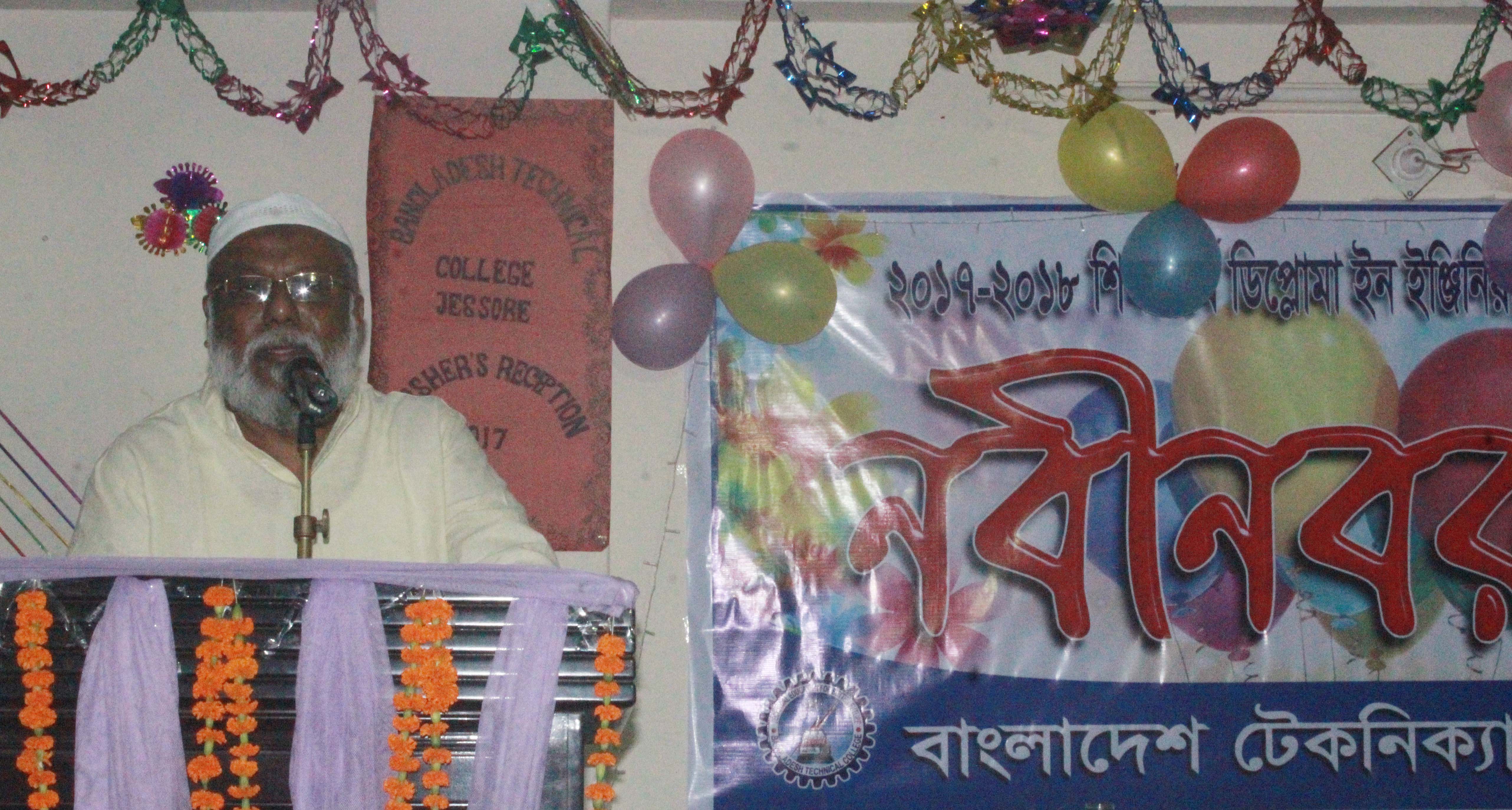 কলেজ অধ্যক্ষ এসকে এম তহীদুজ্জামান এর সভাপতিত্বে আয়োজিত নবীনবরণ অনুষ্ঠানে বক্তব্য রাখেন পরীক্ষা নিয়ন্ত্রক মোঃ আবু হুরায়রা, টেক্সটাইল ইঞ্জিনিয়ারিং বিভাগের বিভাগীয় প্রধান প্রকৌশলী প্রদ্যুৎ মল্লিক, সিভিল ইঞ্জিনিয়ারিং বিভাগের বিভাগীয় প্রধান প্রকৌশলী মোঃ আসিফ হাসান, কম্পিউটার ইঞ্জিনিয়ারিং বিভাগের বিভাগীয় প্রধান প্রকৌশলী জি.এম. ইসরাফিল ইসলাম, ইলেকট্রিক্যাল ইঞ্জিনিয়ারিং বিভাগের বিভাগীয় প্রধান প্রকৌশলী মাহমুদুল হাসান মিরু খান, বিজনেস এ্যাডমিনিস্ট্রেশন, সোস্যাল সায়েন্স ও রিলেটেড সাবজেক্টস্ বিভাগের বিভাগীয় প্রধান মোঃ আফজাল হোসেন, ন্যাচারাল সায়েন্স ও কেমিক্যাল ইঞ্জিনিয়ারিং বিভাগের বিভাগীয় প্রধান ইমরান শেখ এবং নবীনদের মধ্য হতে প্রতিটি বিভাগ থেকে একজন করে শিক্ষার্থী ইংরেজীতে তাদের অনুভূতি ব্যক্ত করেন এবং প্রবীণরাও নবীনদের উদ্দেশ্যে তাদের বক্তব্য রাখেন।